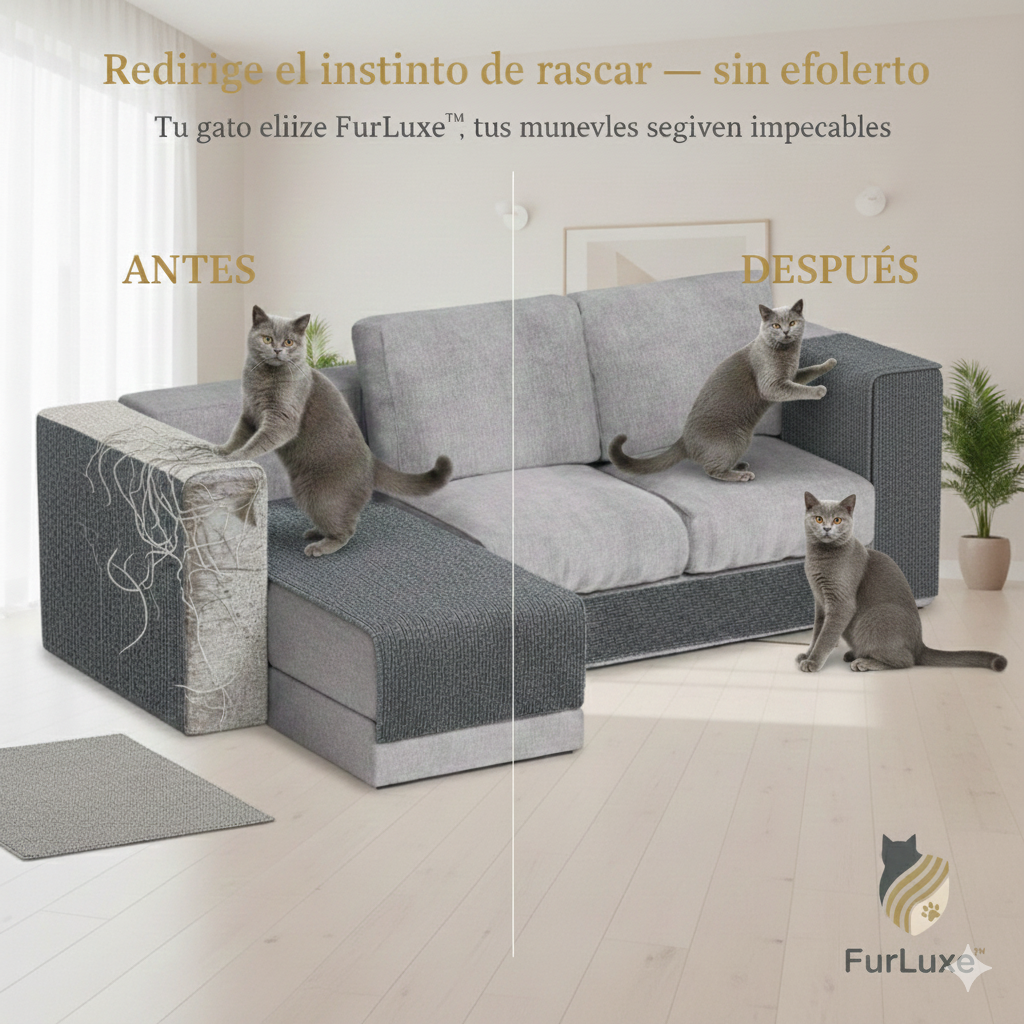 Olvídate del estrés por rasguños y muebles dañados. Con FurLuxe™, proteges tu hogar y haces a tu gato más feliz sin complicaciones.