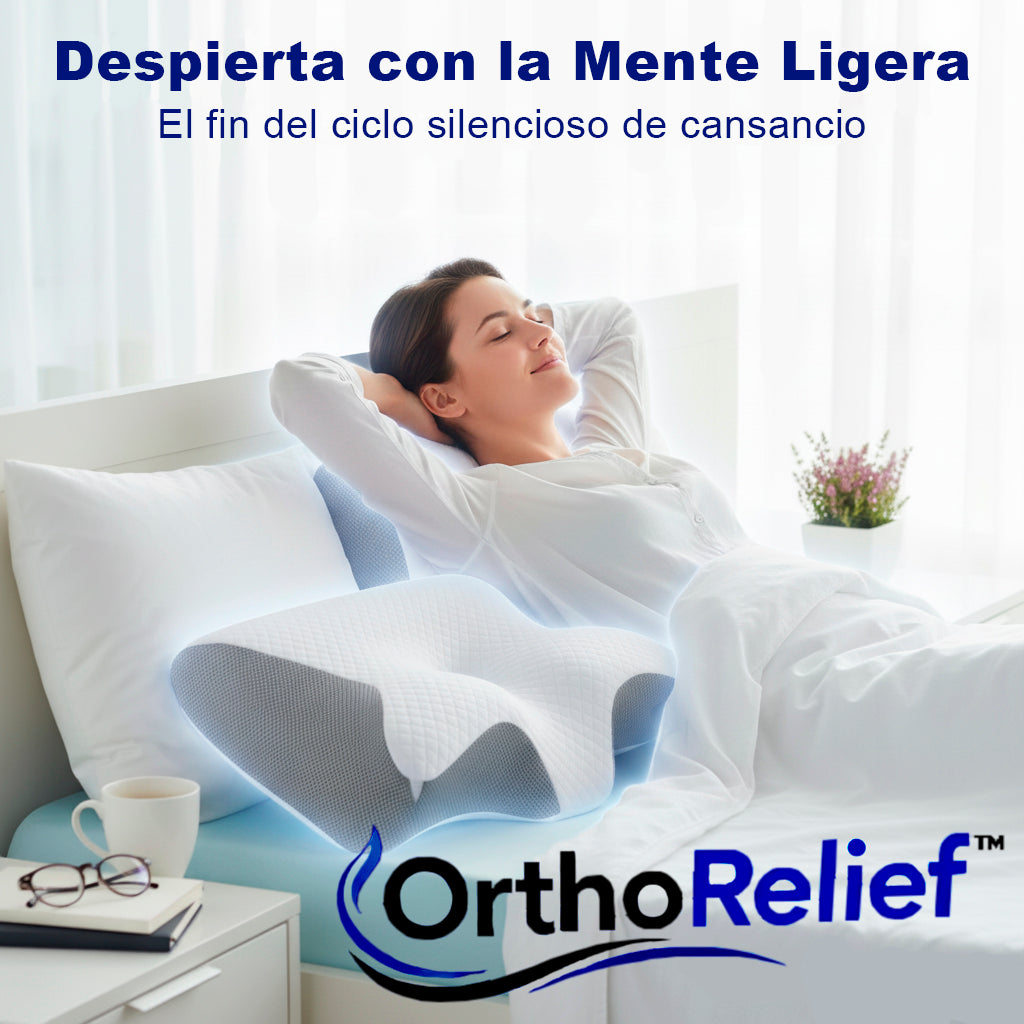 OrthoRelief™ fue diseñado para quienes viven este ciclo silencioso de cansancio, ayudando al cuerpo a mantener una postura estable durante el sueño y a reducir los microdespertares causados por la incomodidad cervical.